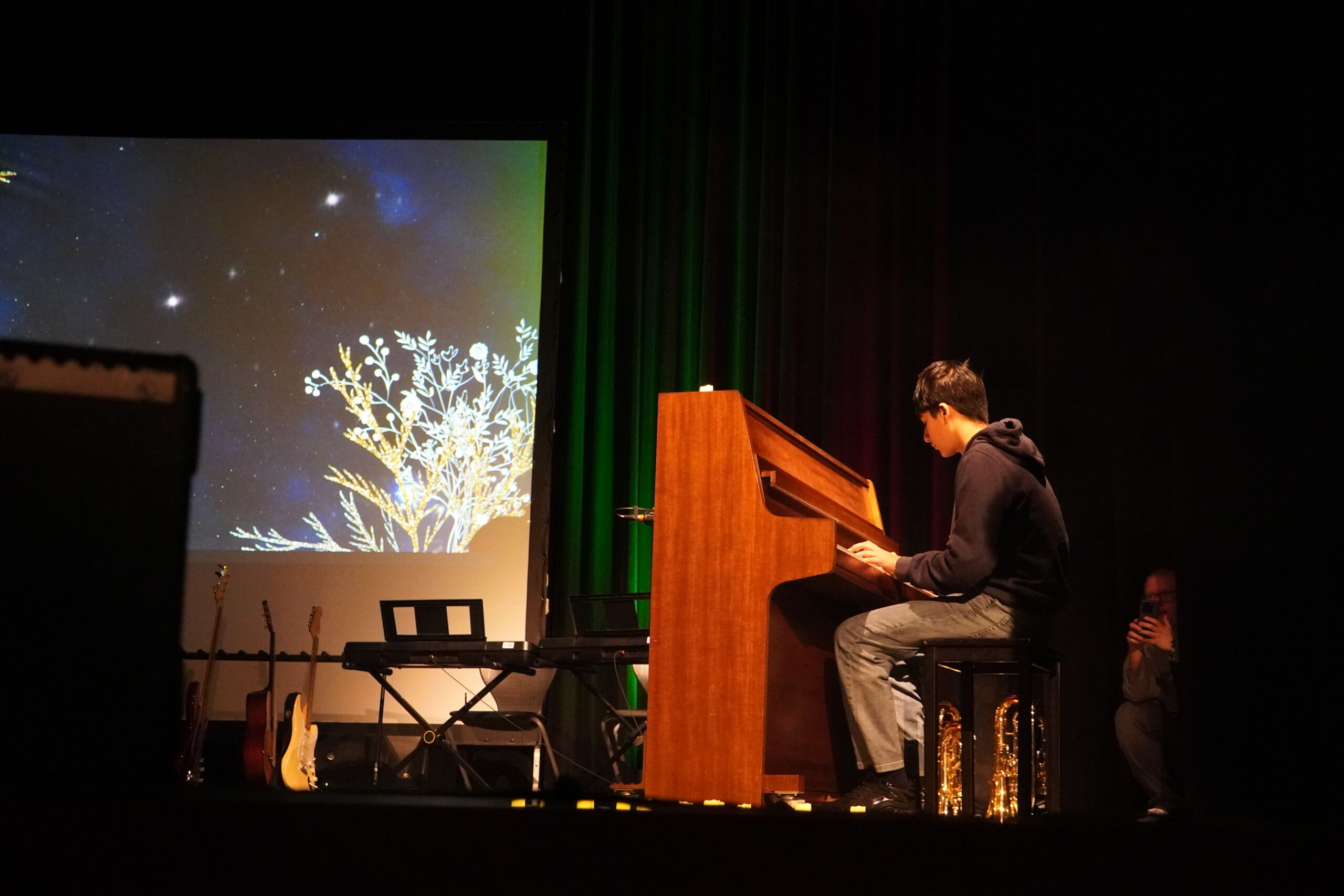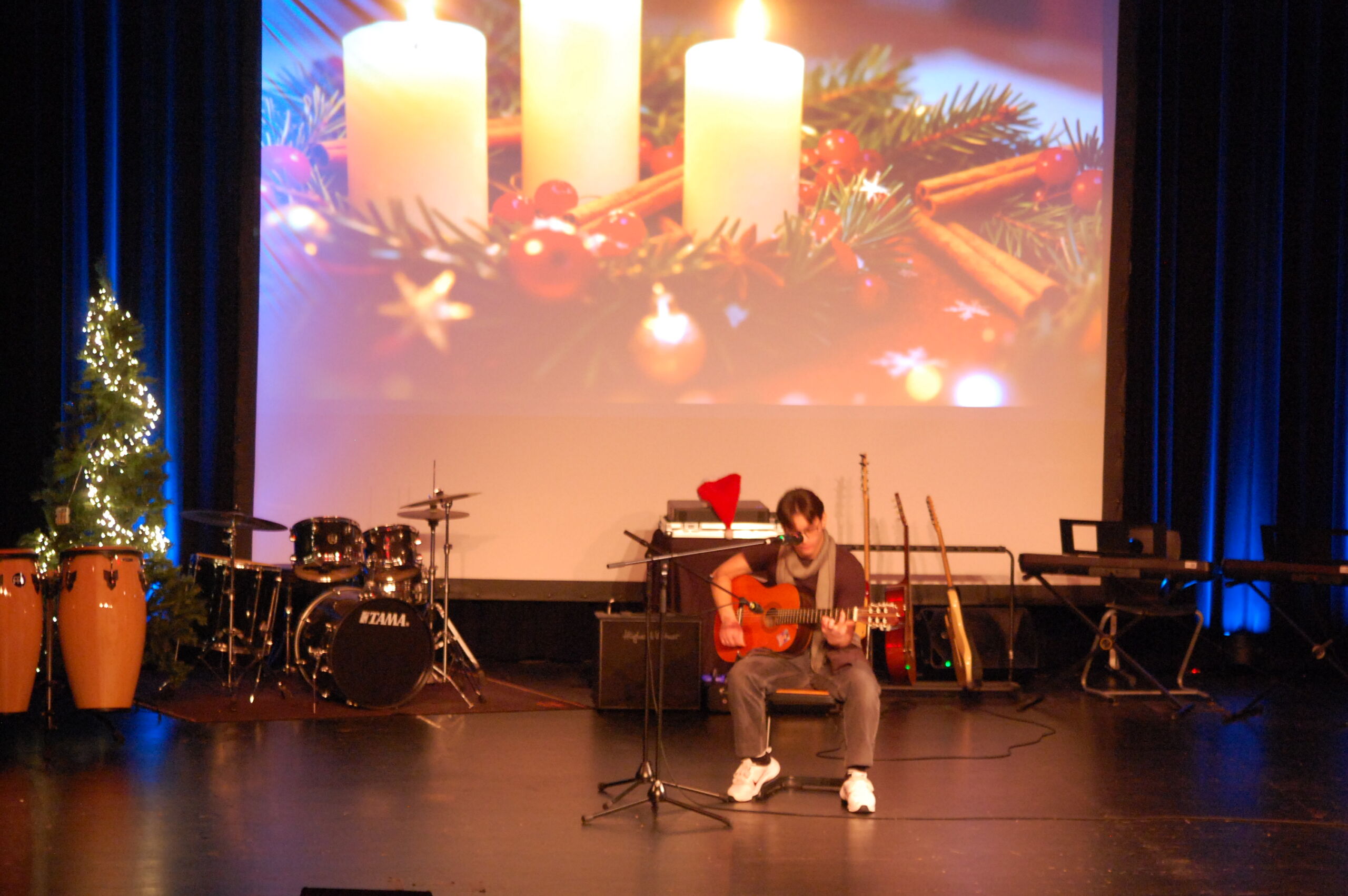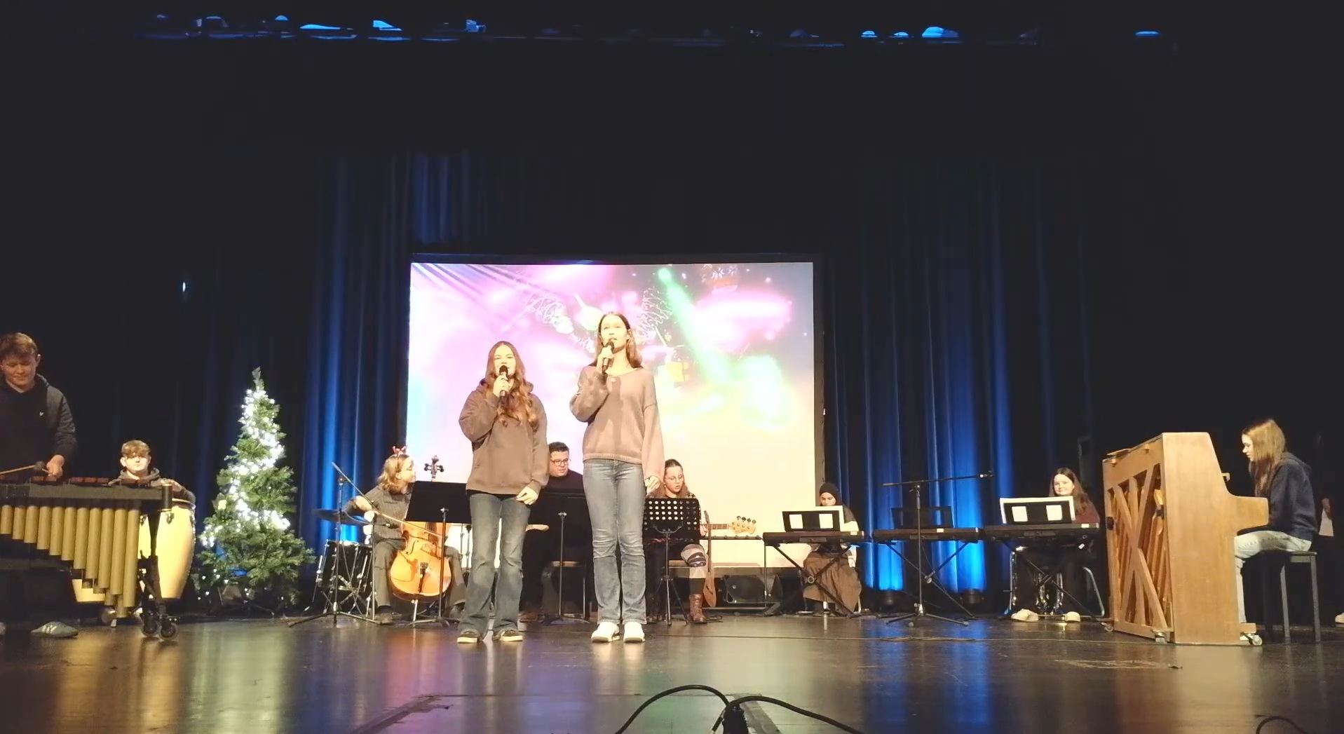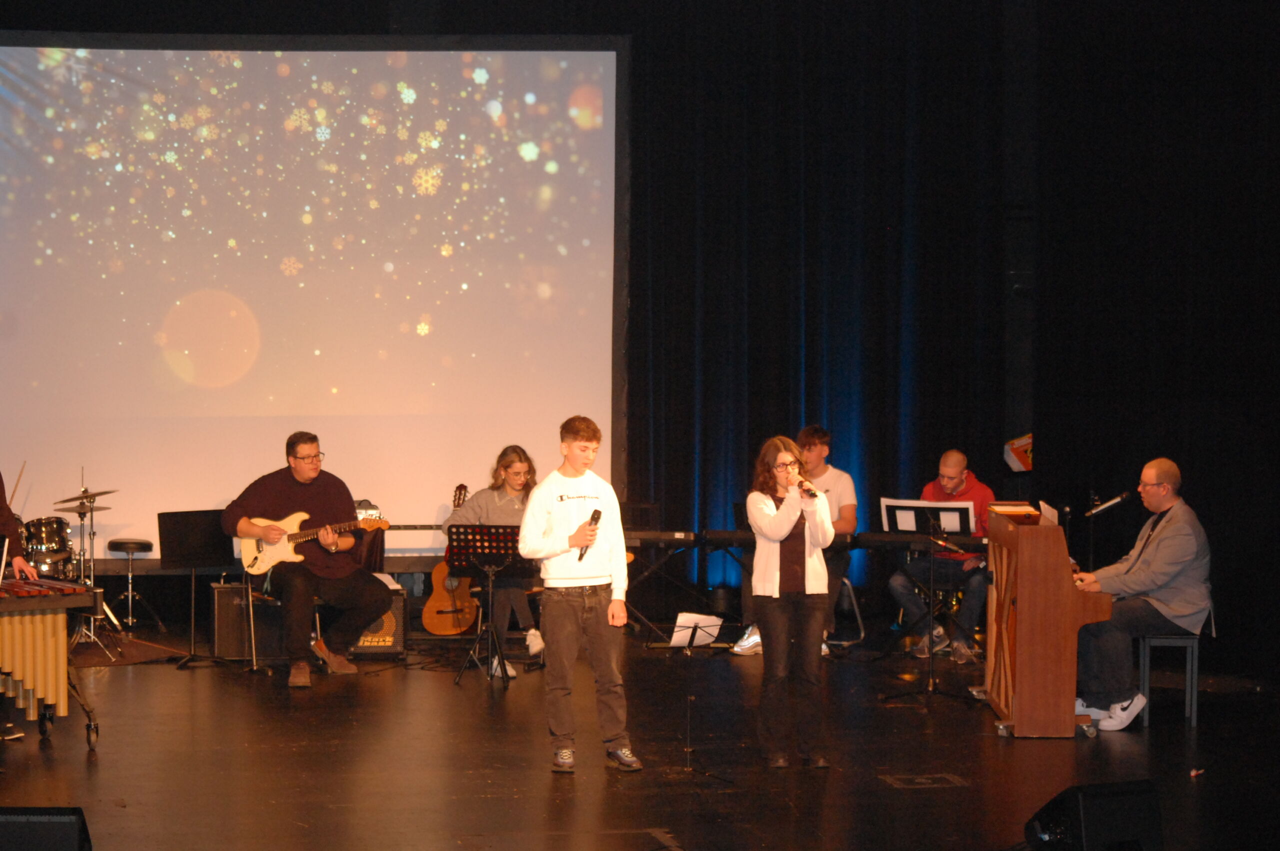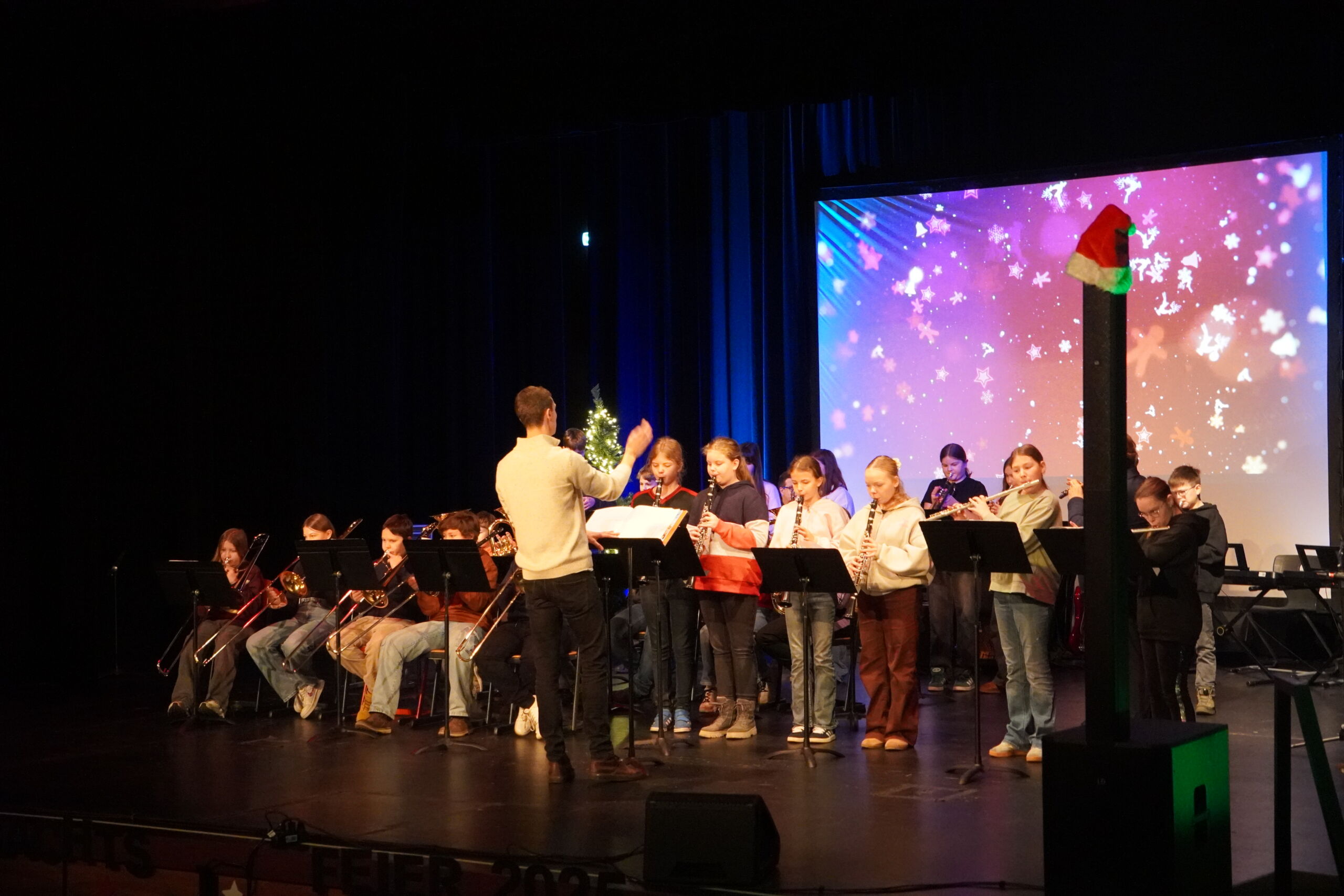 Für die stimmungsvolle Umsetzung sorgte zudem die Bühnentechnik-AG mit passenden Hintergrundvideos, perfektem Licht und gutem Ton – ein Zusammenspiel, das diese Veranstaltung zu etwas Besonderem machte. Geplant und organisiert wurde die Weihnachtsfeier von den Musiklehrkräften Christiane Meyer, Henning Roolfs, Jens Sonntag und Gerd Zimmermann.