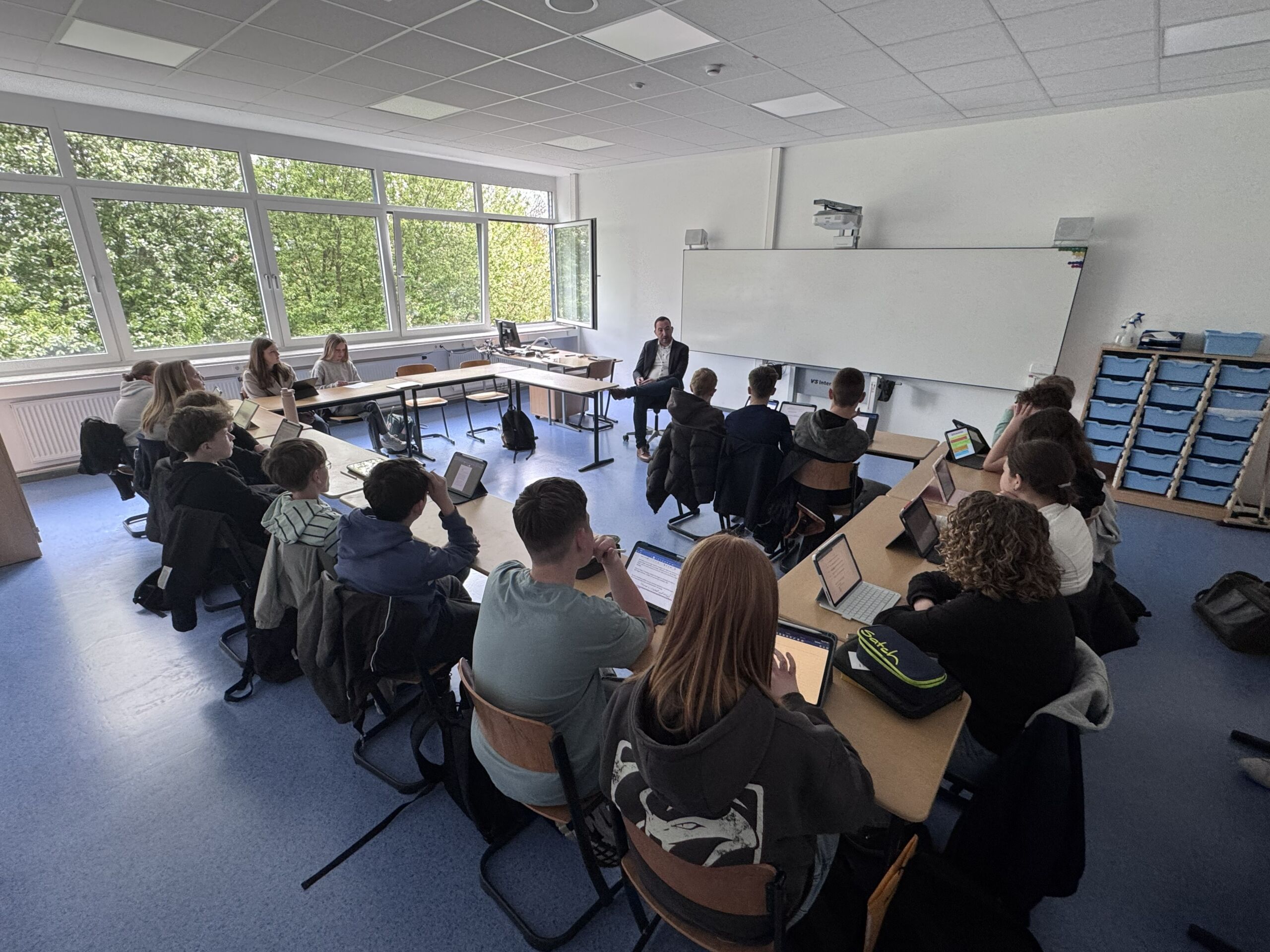 Die gut vorbereiteten Beiträge führten zu einer lebendigen und inhaltlich anspruchsvollen Diskussion, in der die Schülerinnen und Schüler ihre Fragen gezielt einbrachten und kritisch nachhakten. Nico Bloem zeigte sich beeindruckt vom Engagement und Interesse der Lerngruppe und ging ausführlich auf die verschiedenen Themen ein. Auf die Frage nach seiner Motivation für die politische Arbeit erklärte er: „Damit es uns gut geht, damit die Region nach vorne kommt.“