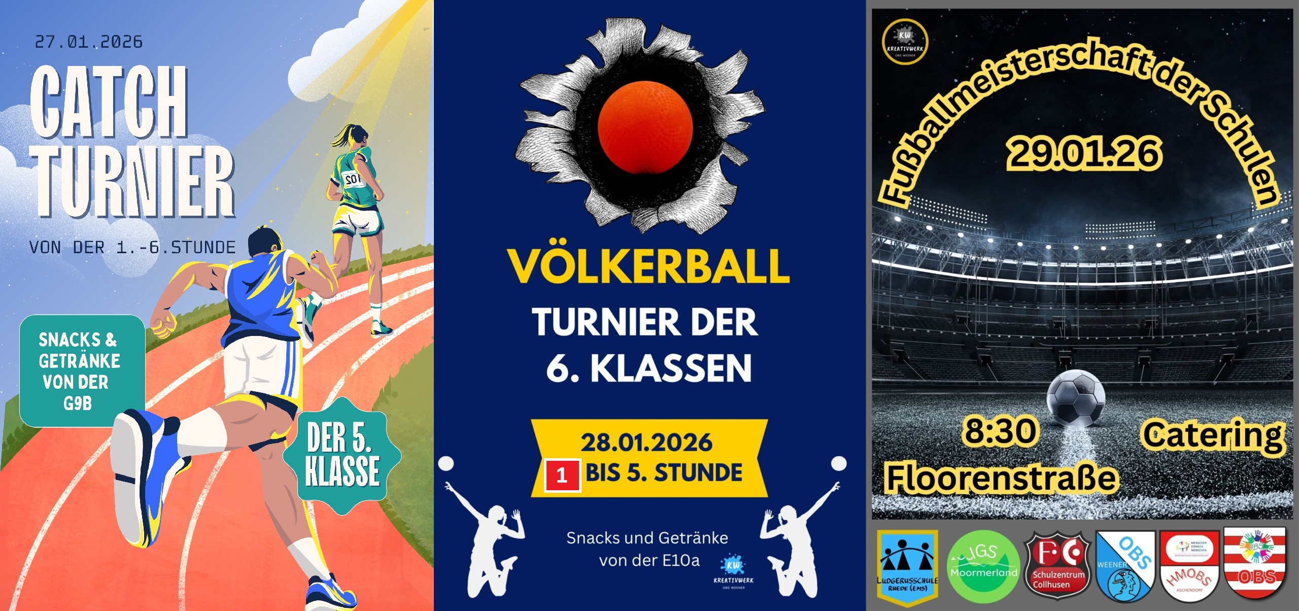 Sportliche Highlights zum Halbjahresende In der letzten Januarwoche 2026 stehen an der Oberschule Weener gleich mehrere sportliche Höhepunkte auf dem Programm. Vom 27. bis 29. Januar finden drei Turniere für unterschiedliche Jahrgänge statt, bei denen Teamgeist, Fairplay und Bewegung im Mittelpunkt stehen. Begleitet werden alle Veranstaltungen durch den engagierten Einsatz der Schulsanitäterinnen und Schulsanitäter, die für Sicherheit und schnelle Hilfe sorgen . 🟢 Catch-Turnier der 5. Klassen 📅 [...]